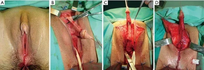 Note, reconstruction didn’t change the basic fact of the congenital defect, which in any case meant the patient was sterile, but did a cosmetic change (with added hormones) so the patient could walk around in public without people gawking at him or her. Patients were given one or another quasi-normal appearance, based on gender number 4, or social expectations associated with men and women in the latter 1950s.